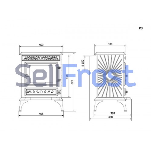 | Диаметр дымохода | 150 |