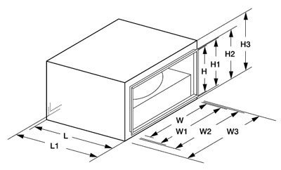 | Модель | W | W1 | W2 | H | H1 | H2 | L | L1 |